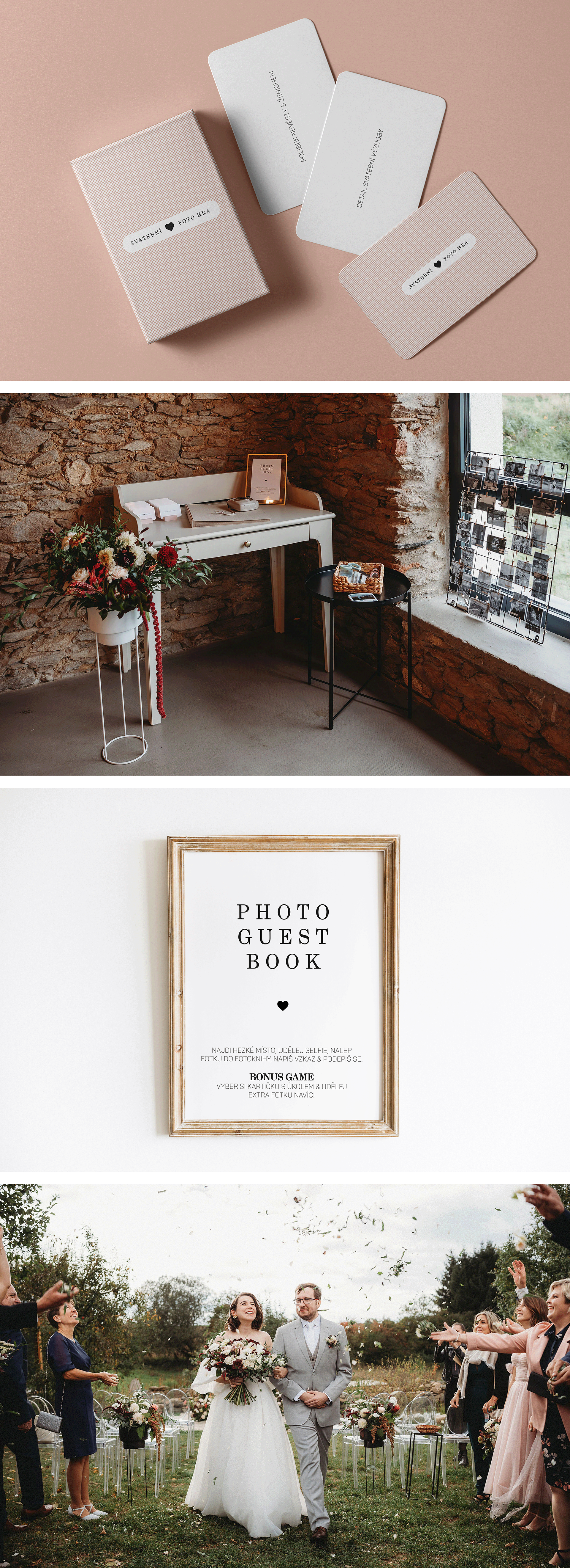 Foto-koutek, ve kterém se hosté fotí a následně lepí své fotografie do knihy s osobními vzkazy, má dnes na svatbě každý. Co takhle přidat k foto-koutku malou hru a nenásilně tak hosty pobavit.